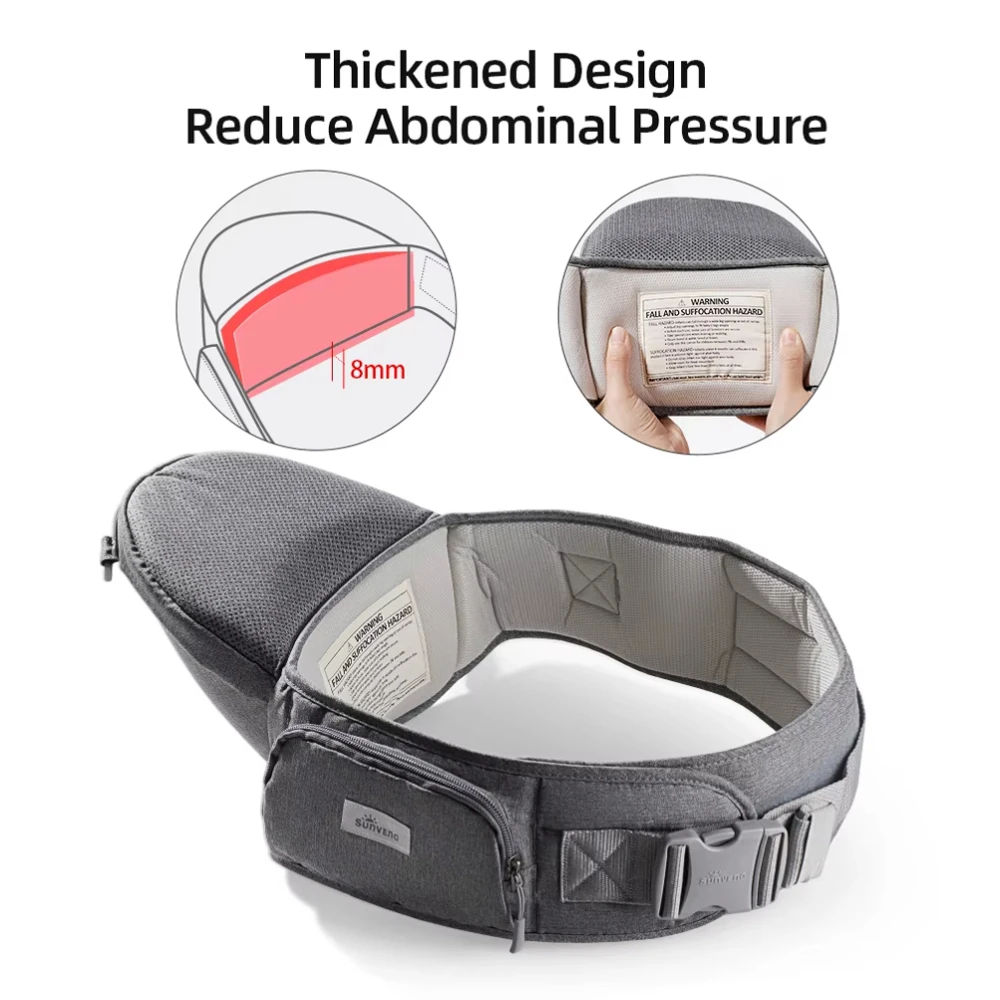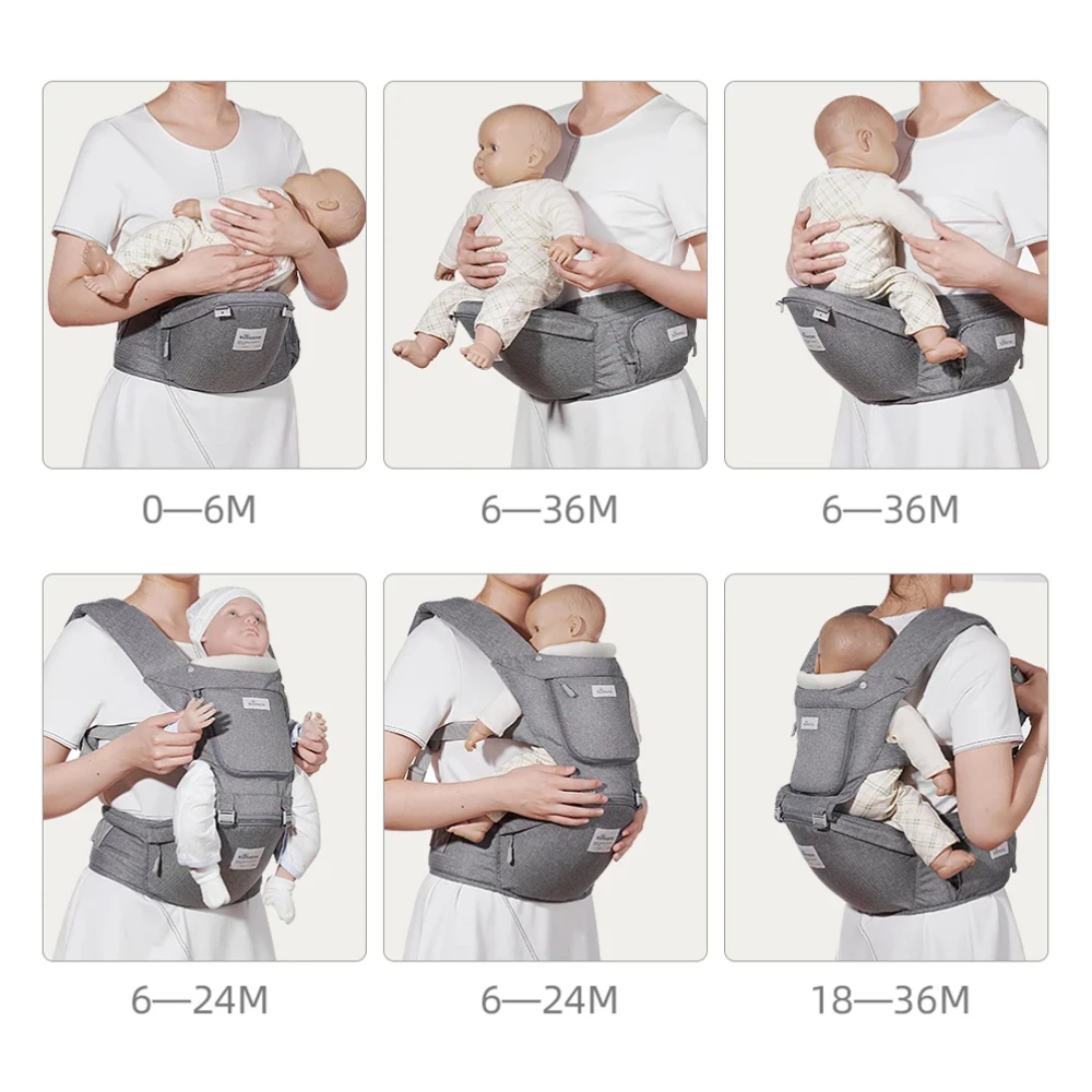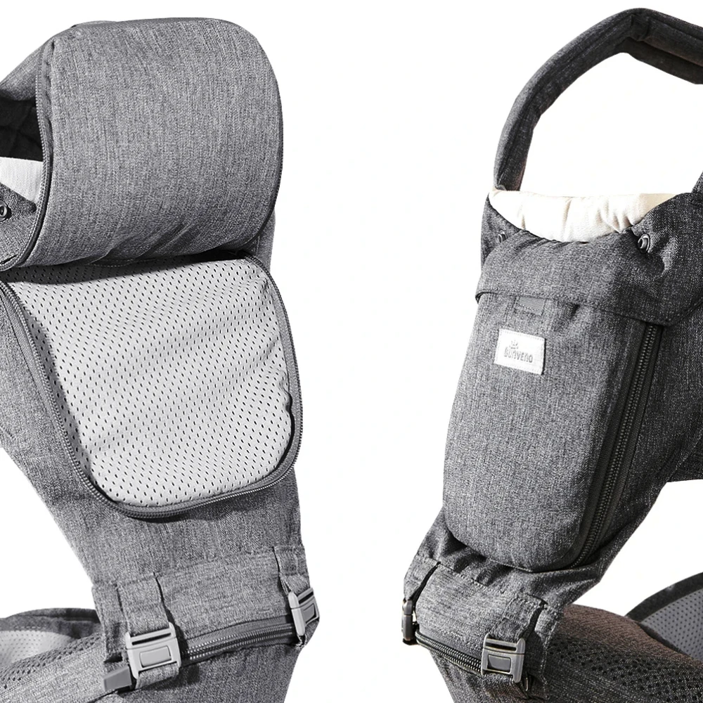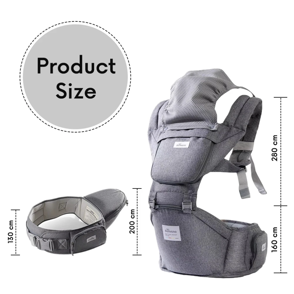 The Sunveno Baby Carrier with Hip Seat in grey is thoughtfully designed to offer maximum comfort for both baby and parent. This versatile carrier features a built-in hip seat that supports the baby's natural sitting position while reducing strain on the parent's back and shoulders. Crafted from breathable fabric, it ensures ventilation even during extended wear. With multiple carrying positions, padded shoulder straps, and a supportive waistband, this carrier is ideal for hands-free bonding time whether at home or on the go.