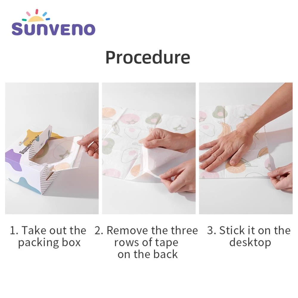 sunveno disposable placemats, baby travel placemats, feeding placemats 40 pack, kids dining placemats, disposable table mats baby, hygienic baby feeding mat, stick-on placemat, waterproof kids placemat, bpa free baby placemat, portable baby dining mat