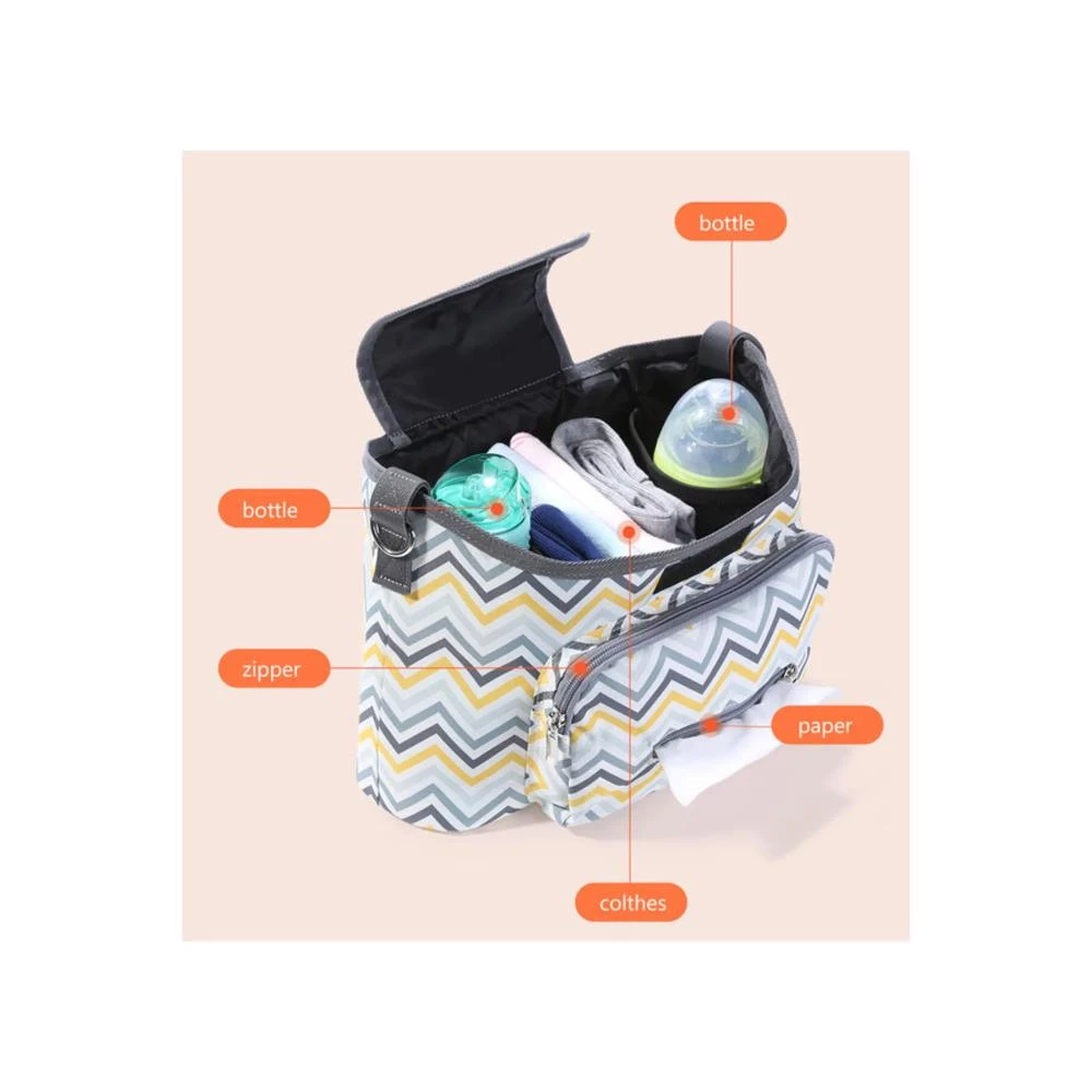 stroller organizer bag, sunveno stroller organizer, yellow wave stroller bag, stroller storage organizer, baby stroller handbag, waterproof stroller organizer, multi-partition stroller bag, stroller accessory, baby shower gift, newborn stroller organizer