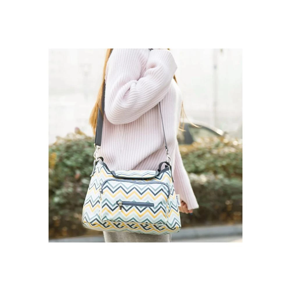 The Sunveno Baby Stroller Organizer in cheerful Yellow Wave print offers the perfect blend of style, convenience, and practicality for busy moms on the move. Crafted from waterproof polyester, this lightweight (0.3kg) organizer measures 33x12x21cm and features five spacious partitions to neatly hold milk bottles, fruits, 2-3 nappies, small cloths, wallet, mobile phone, toys, sippy cups, books, keys, drinks, snacks, and diapers - keeping everything within easy reach. Its two-way design allows quick conversion from stroller attachment to a standalone handbag using the adjustable 125cm strap, while a front pocket keeps your phone, keys, and tissues accessible. The smart design even includes a headphone slot for hands-free calls while strolling with your baby. Easy to attach to any stroller and perfect as a baby shower or newborn gift, this organizer ensures your strolls are relaxing, enjoyable, and clutter-free.