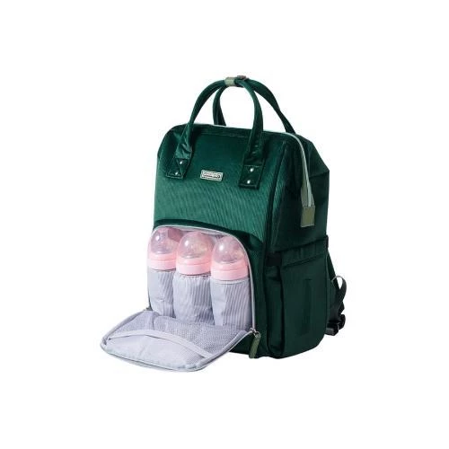 Sunveno Diaper Bag Corduroy -Green Stylish Backpack with USB Port & Insulated Bottle Holders by SAMBOX