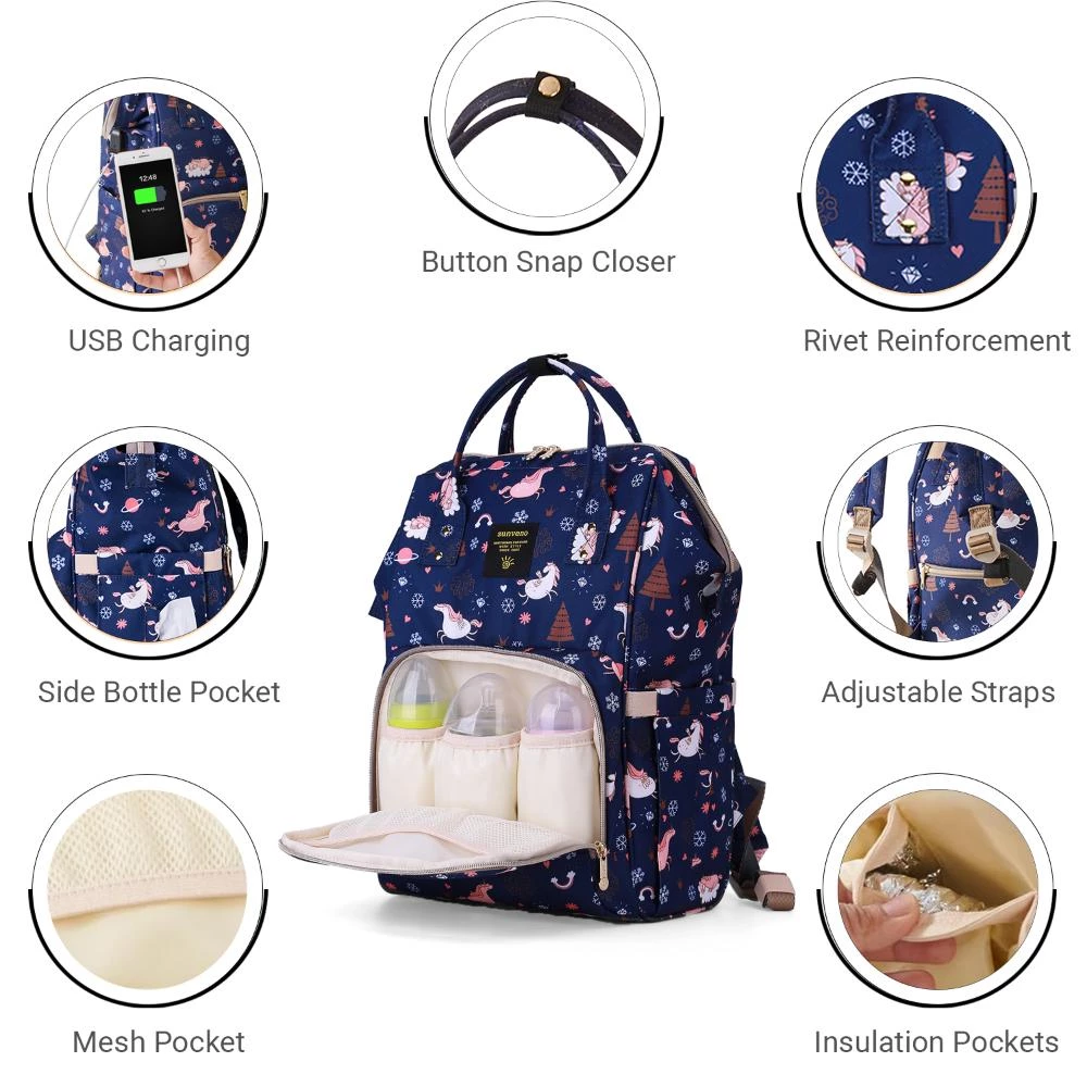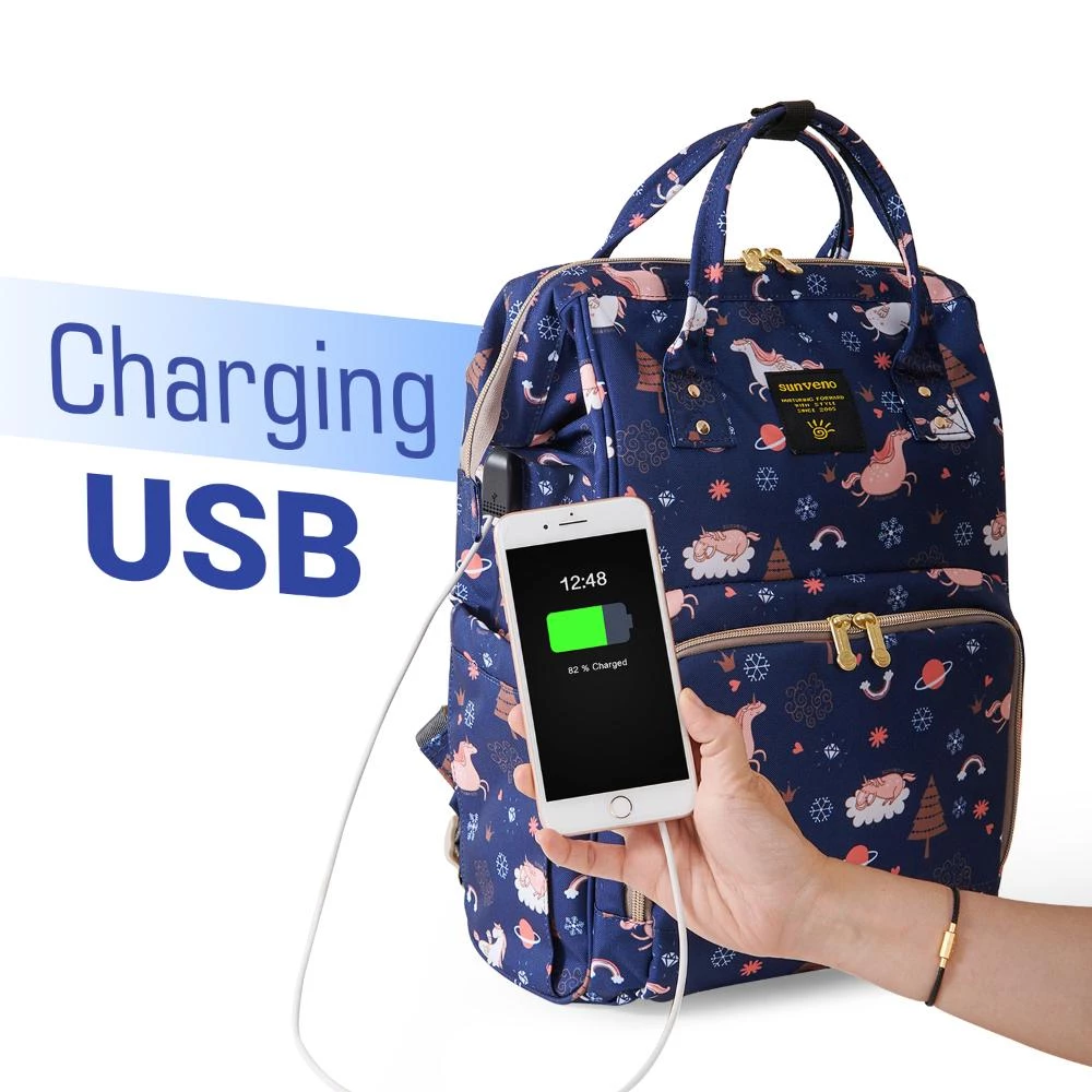 usb diaper backpack, blue baby bag, Sunveno diaper bag, baby changing bag, waterproof baby bag, insulated bottle pockets, lightweight mom backpack, multifunction travel diaper bag, portable baby gear, stylish diaper bag