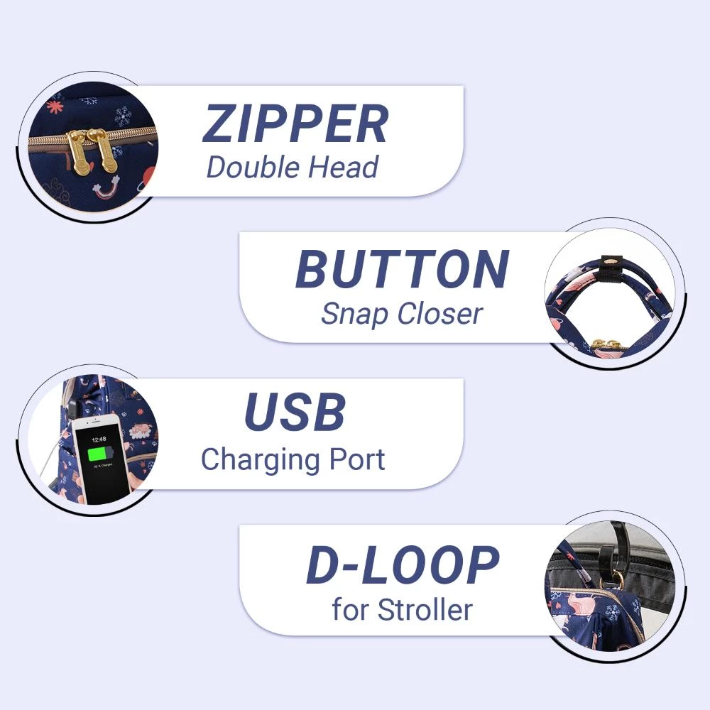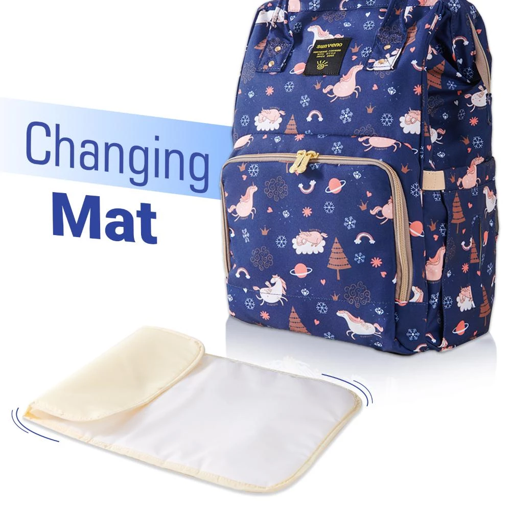 Sunveno Diaper Bag with USB Charging Port and Changing Mat – Blue Dream Sky