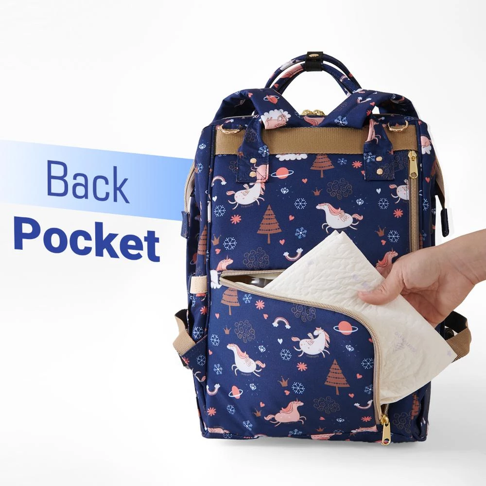 The Sunveno Diaper Bag in Blue Dream Sky is a beautifully crafted backpack that combines elegance with everyday functionality. It includes a USB charging port so you can charge your phone directly from a power bank inside the bag—no need to open it. Designed for convenience and style, the wide zippered opening is supported by a sturdy frame, while gold accents give it a premium finish. Despite its generous interior space, the bag remains lightweight and easy to carry. It features a clever back zipper for accessing items at the bottom, a waterproof pocket to keep wet and dry items separate, and a side tissue pocket for quick access when needed. Inside, three insulated bottle holders help maintain temperatures for hours, while additional storage compartments keep all essentials organized. A built-in key holder string makes finding keys effortless. Complete with stroller hooks and a matching changing mat, this diaper bag is your perfect companion for hands-free outings.