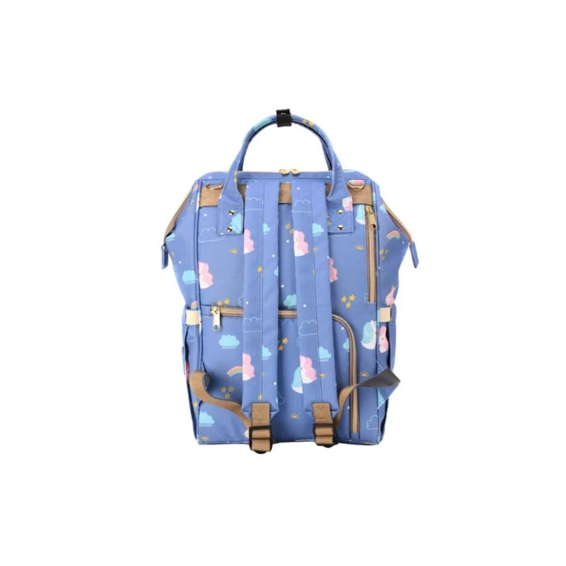 Stylish, spacious, and ultra-functional, the Sunveno Diaper Bag with USB in Unicorn Blue is a must-have for modern moms on the go. Designed by SAMBOX for travel and everyday convenience, this lightweight diaper backpack (only 820g) features a built-in USB port, allowing you to charge your phone with ease using a power bank stored inside. The wide, fish-mouth opening with metal support and elegant golden zippers makes accessing essentials effortless. With multiple inner compartments, a waterproof back pocket for wet items, and side pockets for tissues and bottles, organizing baby necessities has never been easier. It includes three insulated milk bottle holders that keep liquids warm or cool for 2-4 hours, a secure key holder string, and padded shoulder straps for comfortable all-day wear. Whether you're packing for twins or siblings, this unicorn-themed diaper bag combines practicality with style to support your parenting journey in the most fashionable way.