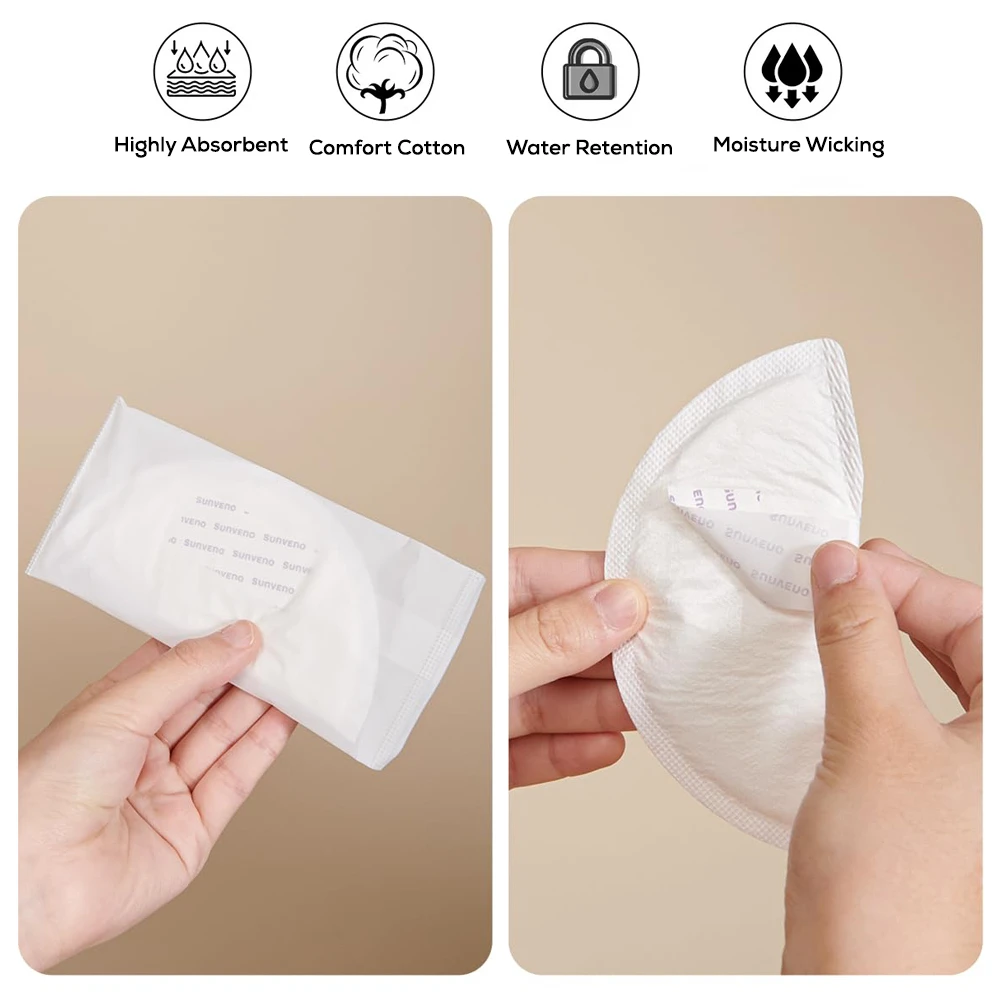 disposable breast pads, nursing pads, leak-proof nursing accessories, sunveno breast pads, absorbent breast pads, cotton breast pads, discreet nursing essentials, breastfeeding hygiene, 60pcs breast pad pack, white nursing pads