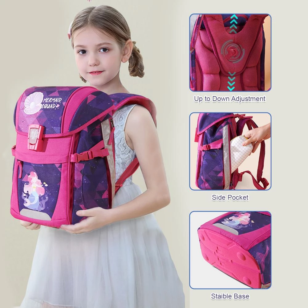 sunveno ergonomic backpack, kids mermaid backpack, pink school bag, spine support bag, adjustable kids backpack, waterproof kids school bag, reflective kids backpack, lightweight student bag, mermaid print bag, SAMBOX school bag