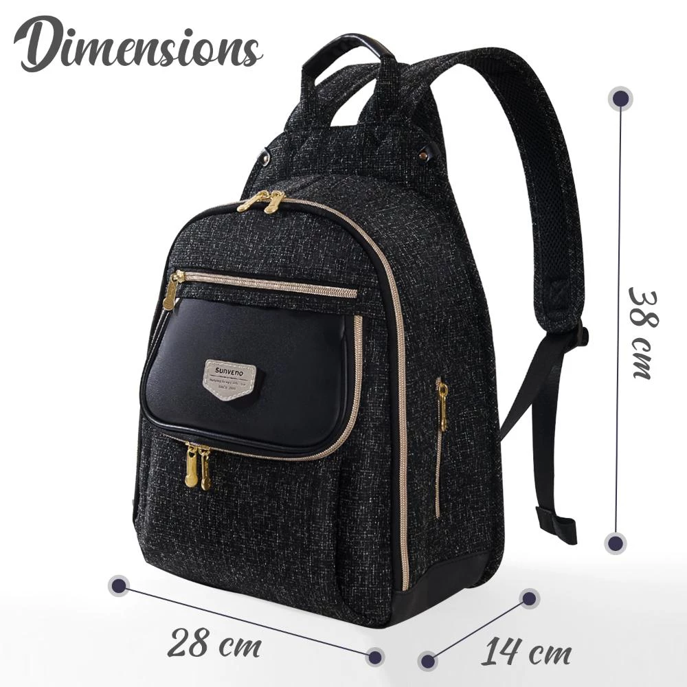 Sunveno Fashion Compact Diaper Backpack - Black | Lightweight Organizer Baby Bag