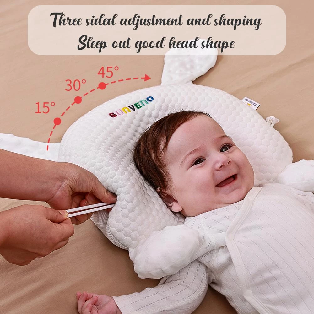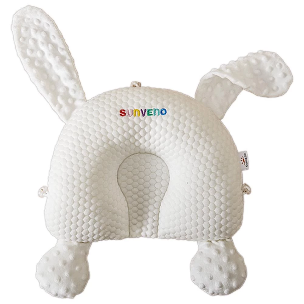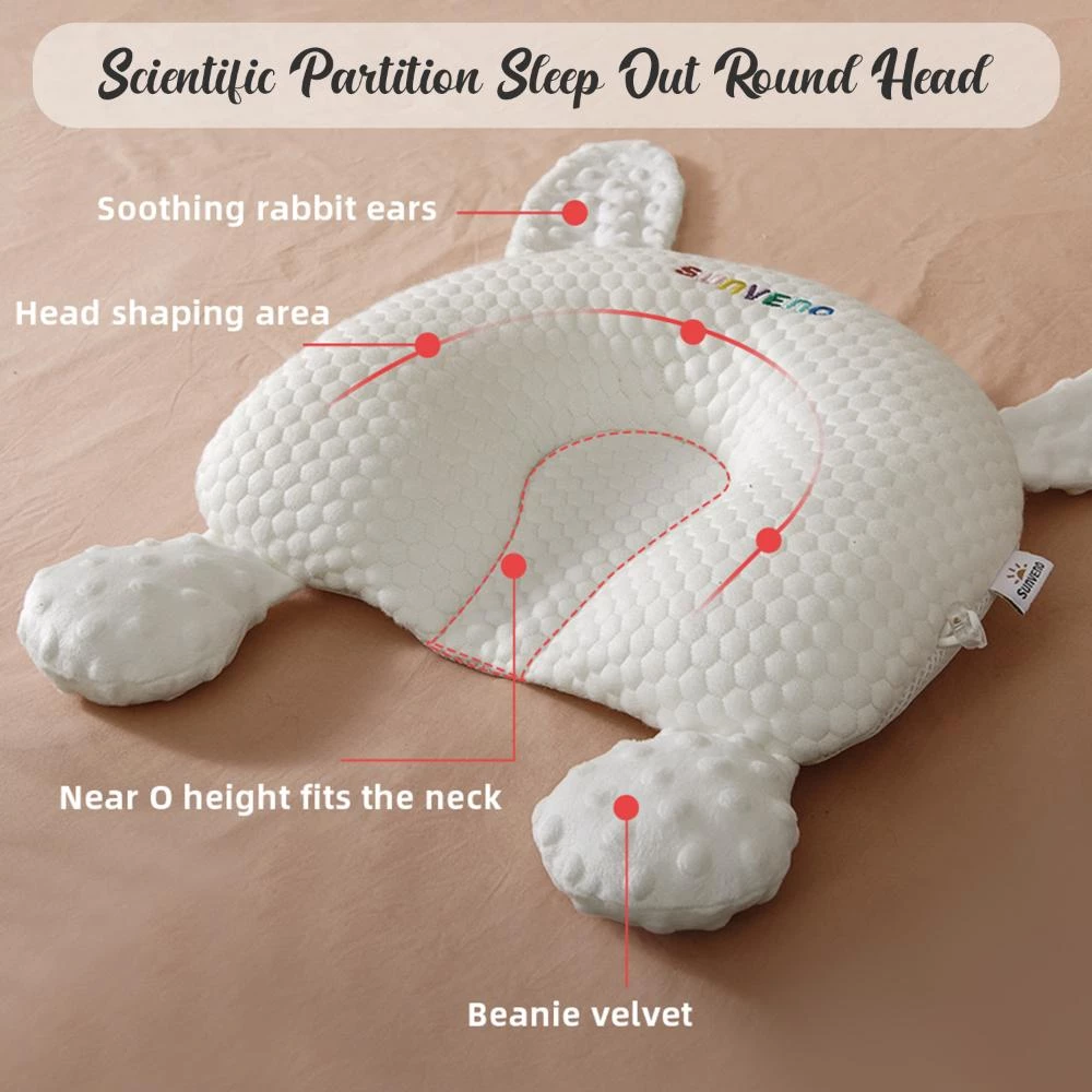infant head pillow, baby sleep pillow, head shaping cushion, anti-flat head pillow, Sunveno pillow, breathable baby pillow, baby neck support pillow, machine washable baby pillow, rabbit design baby pillow, newborn essentials