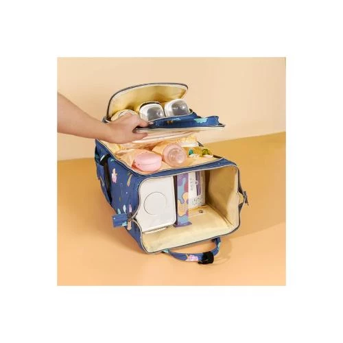 Designed for multitasking parents on the go, the Sunveno Stylish Diaper Travel Backpack XL in Unicorn Blue by SAMBOX combines spacious practicality with sleek style. Perfect for both mums and dads, this oversized backpack features a revolutionary dual front partition with a large, easy-access compartment for baby essentials and an anti-spill milk bottle pocket that fits bottles of all sizes. Inside, the bag is well-lit and equipped with seven thoughtfully designed compartments to keep diapers, clothes, and baby food organized, including an attached zipper pocket for mobile phones and valuables. The bag includes three insulated front bottle holders to keep milk warm or cold for 2-4 hours and two side pockets for water bottles and tissue packs. For added convenience, it has built-in, sturdy stroller straps with buckles for easy attachment to any stroller and a back strap to secure the bag on suitcase handles when traveling. The diaper changing pad included is extra large for comfort, while the fish-mouth top opening offers wide visibility and easy access to all contents. Crafted from water-repellent, machine-washable polyester with padded shoulder straps and premium zippers, this lightweight yet durable backpack supports up to 25kg and is the perfect all-in-one travel companion for busy parents.