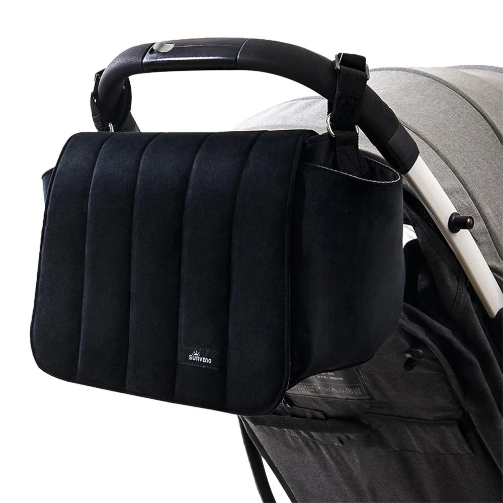 stroller diaper bag, velvet diaper bag, black baby bag, Sunveno shoulder bag, baby organizer bag, insulated bottle diaper bag, stylish diaper backpack, travel diaper bag, multifunction baby bag, new mom essentials