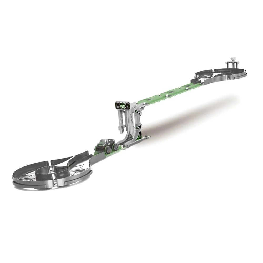 Experience nonstop racing excitement with the Super Stunt Rotate Track Roll Rail Car, a 47-piece set that lets kids design and customize their own thrilling race tracks. Featuring changeable assembly options and DIY tracks with straight, bend rails, and connectors, this set sparks creativity and imaginative play. The track car’s captivating light wheel illuminates the course as it speeds along, adding a mesmerizing visual effect to every race. Made for children 3 and up, this durable set promotes fine motor skills and endless fun. (Batteries not included.)