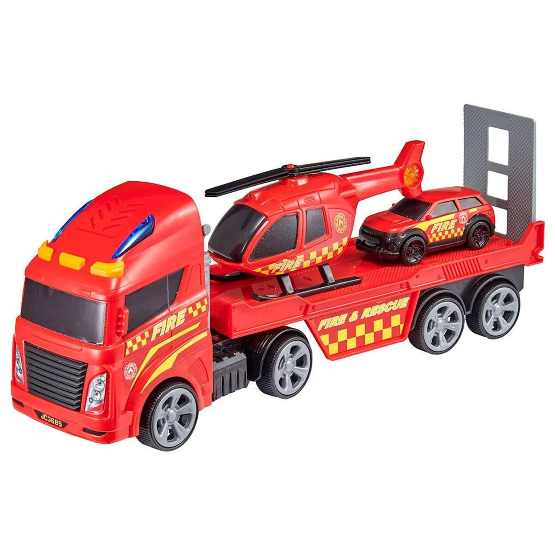Unleash your child's imagination with the Teamsterz Fire Transporter, the perfect toy for endless heroic adventures! With its set of emergency vehicles, your little one can role-play as a brave firefighter, saving the day and responding to rescues. This fire transporter set encourages creative play while promoting problem-solving skills and hand-eye coordination. Designed for hours of fun, it's a must-have for any young adventurer. Whether it's indoors or outdoors, this set is the perfect companion for imaginative play.