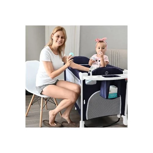 baby bedside cot navy blue, 4 in 1 baby cot, co-sleeper bassinet, baby playpen rocker, diaper changing station cot, foldable baby cot, mosquito net baby cot, musical toy bar cot, portable baby cot, navy blue baby cot