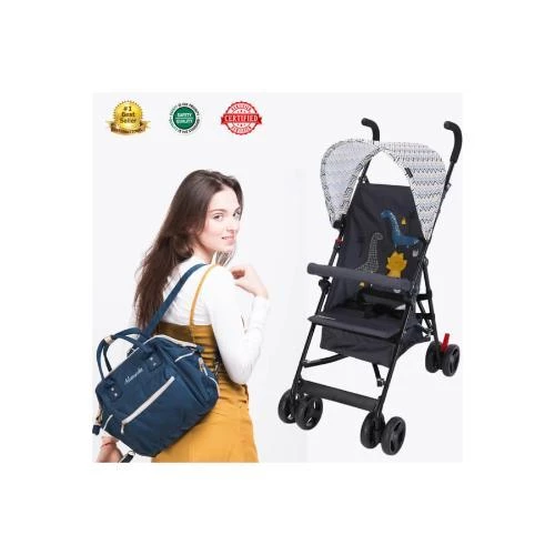 Enjoy ultimate convenience and functionality on your family outings with the Teknum Eco Lite Stroller & Alameda Ace Diaper Bag Combo -Yellow Wave by SAMBOX. This smartly designed travel combo includes the lightweight Teknum Eco Lite Stroller featuring a modern black frame with playful dinosaur prints, a spacious storage basket, and an ultra-durable 300D fabric canopy for UV and sun protection. With a 5-point safety harness, additional handrail, one-foot braking system, and 360° swivel front wheels, this stroller provides both safety and ease for your babys comfort on the go. Paired perfectly with the Alameda Ace Diaper Bag, this versatile companion is made of water-resistant, high-density twill nylon, and converts seamlessly between a fashionable messenger bag and a lightweight backpack. With insulated pockets, reinforced straps, and multiple compartments, it's the ideal accessory for mums juggling coffee dates, shopping trips, or day outings with their little ones. This combo brings together style, safety, and practicality in one compact, travel-ready set.