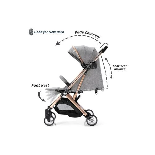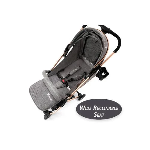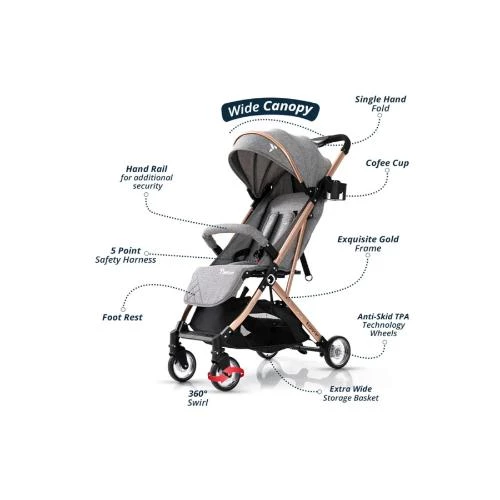 The Teknum Explorer Travel Stroller in Melange Grey by SAMBOX is a premium, lightweight stroller designed for parents who need convenience and style on the go. With a gold aluminum frame offering a unique and luxurious look, this air cabin-friendly stroller folds and unfolds in just one second with a single hand, making travel effortless. It features a wide seat base with a multi-position recline backrest from 95° to 180°, adjustable footrest, and breathable net-like window for ventilation and supervision. The strollers silent shock-absorbing 360° swivel lockable EVA wheels ensure smooth rides on all terrains, while brakes on both rear wheels and a hand brake provide safety and control. Additional conveniences include a large shopping basket, coffee cup holder, mosquito net, and an ergonomic stroller carry handle. Certified to EN safety standards, the Teknum Explorer Travel Stroller is suitable for babies aged 6 to 36 months, supporting up to 15 kg, blending comfort, safety, and sleek design for everyday adventures.