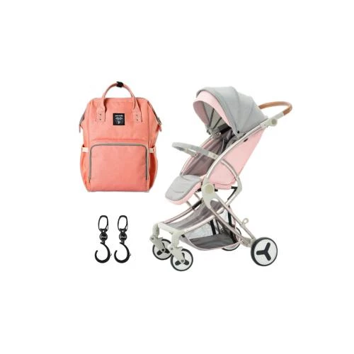 Teknum Feather Lite Traveler A1 Light Pink Stroller + Sunveno Peach Diaper Bag Combo
