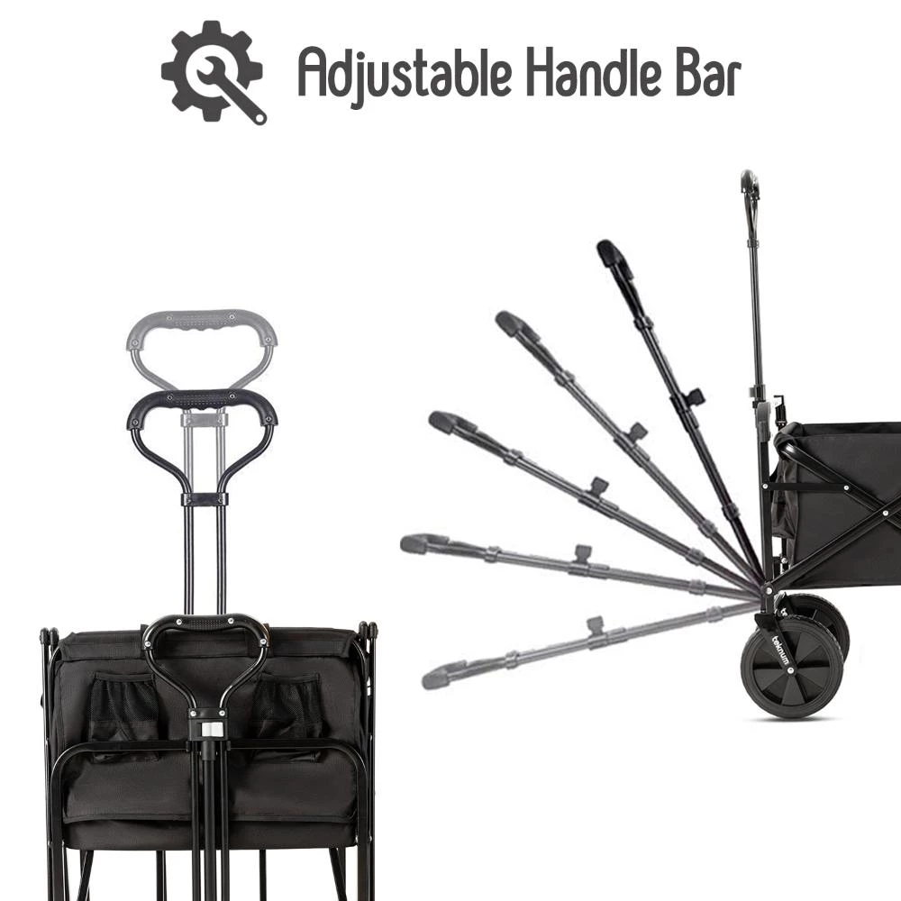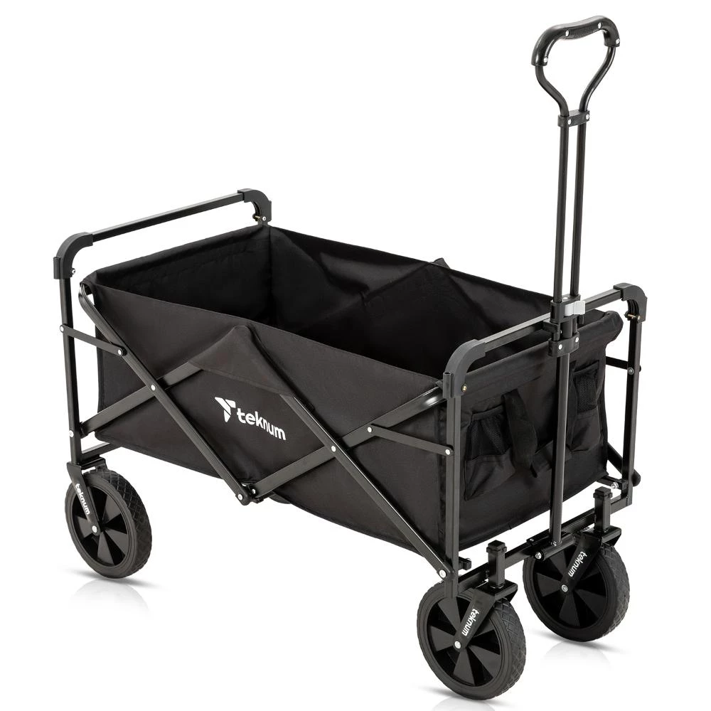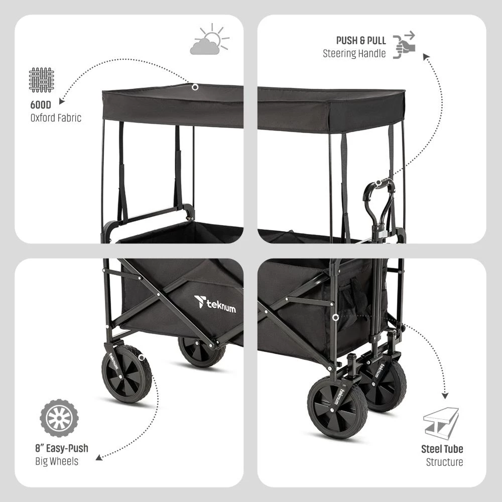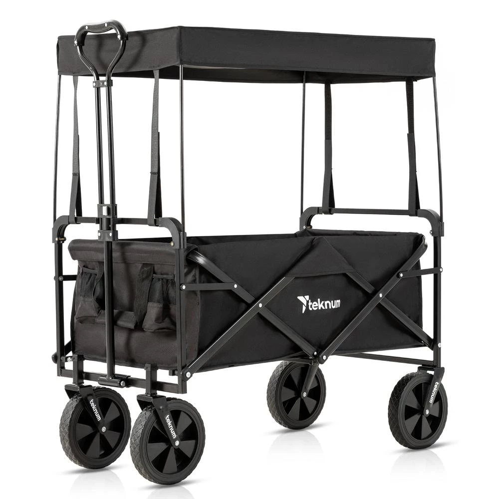 folding wagon cart with canopy, outdoor wagon for kids and gear, portable collapsible wagon, garden beach wagon cart, heavy duty camping wagon, UV canopy wagon stroller, Teknum folding cart, kids wagon with push handle, travel wagon cart black, large capacity pull wagon