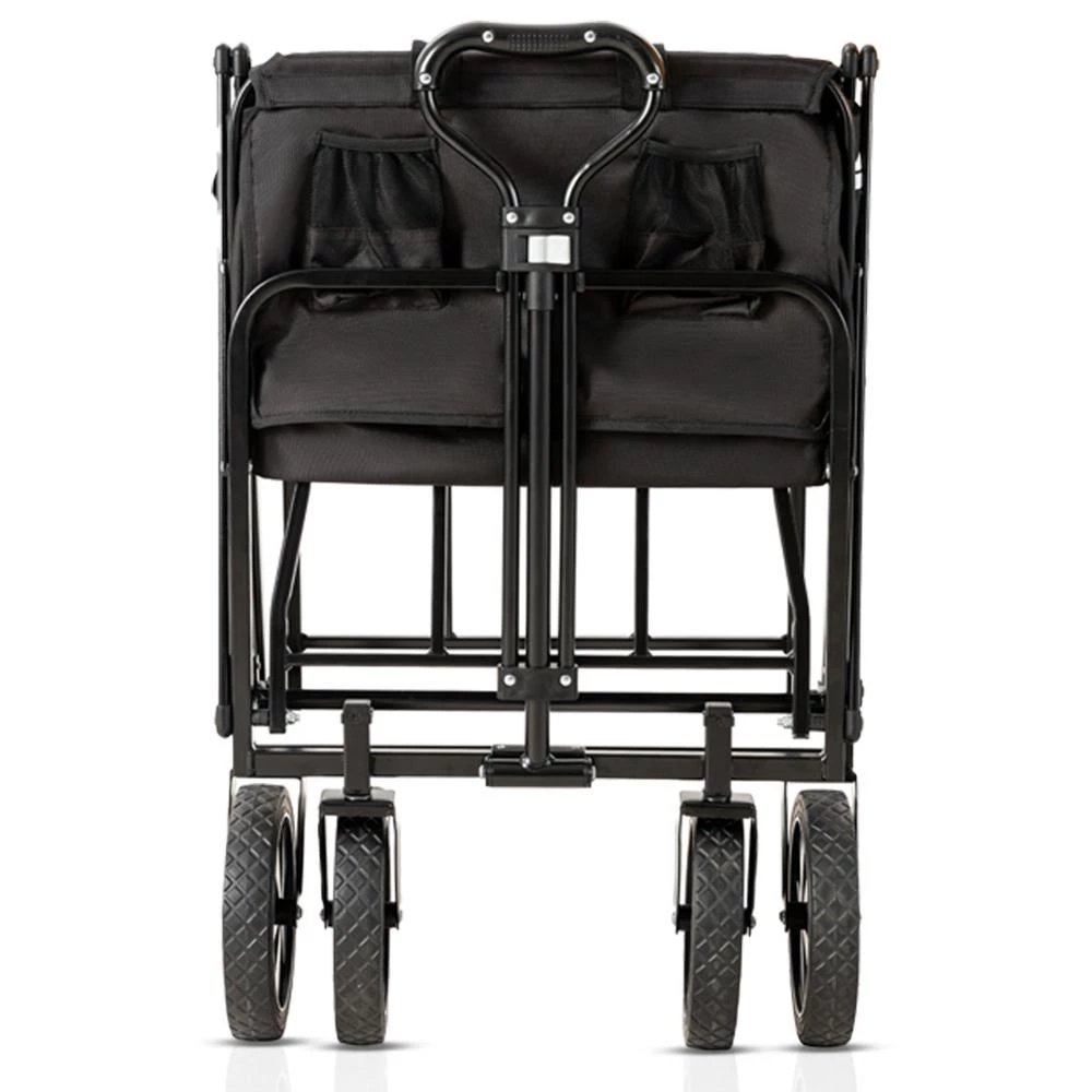 The Teknum Folding Wagon Cart with UV Canopy - Black by SAMBOX is the ultimate outdoor companion for families and adventurers alike. This versatile wagon opens in seconds and boasts an impressive 80 kg load capacity, making it perfect for hauling heavy gear, kids, picnic essentials, sports equipment, or gardening supplies. Its sturdy steel tube frame and durable 600D Oxford fabric ensure long-lasting use, while the removable UV canopy keeps your little ones safe from the sun. Premium rubber tires with Traction Tread and bearings guarantee a smooth, quiet ride across multiple surfaces. The Teknum wagons clever design features both a never-fall pull handle and a fold-away push handlebar for easy maneuvering. When youre done, it folds down compactly for easy storage in your car or garage. From park outings to camping trips and outdoor events, this folding wagon makes every adventure hassle-free!
