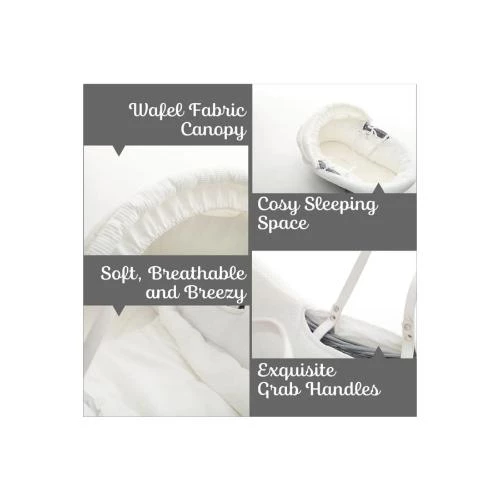 Teknum Infant Wicker Moses Basket with White Waffle Beddings -Wooden Grey Newborn Sleeping Cot by SAMBOX