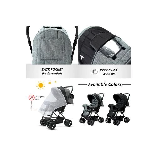 The Teknum Look At Me Reversible Stroller by SAMBOX is your perfect companion for modern-day parenting, combining elegant design with practical features to support both baby and parent. Designed for superior comfort and control, this reversible stroller features an adjustable handle so your baby can face you or explore the world. The cushioned linen seat reclines fully flat for nap time on the go, while the sturdy charcoal frame ensures smooth maneuverability. With 7-inch swivel front and rear wheels, shock-absorbent suspension, a strong foot-activated braking system, and an easy one-hand fold mechanism, this stroller is compact and travel-friendly. A transparent peek-a-boo canopy window allows parents to keep a close eye on their little one, and the wide seat with 3-point harness and T-belt hand rail provides maximum safety. Bonus accessories make this combo a total value pack - a stylish unisex grey Alameda Diaper Backpack with 10 compartments, insulated bottle pockets, tissue and waterproof pockets, and anti-theft storage ensures you're always organized. Also included are a convenient set of stroller hooks and a diaper changing pad, making outings more manageable. Ideal for children up to 15kg, this all-in-one stroller set blends style, function, and comfort.