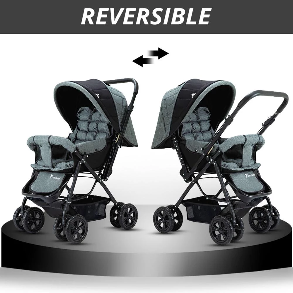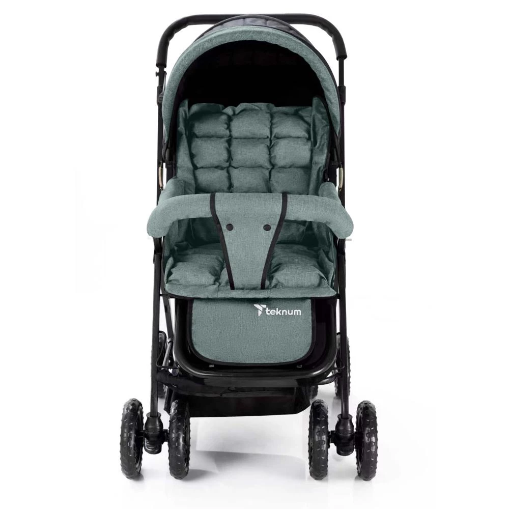 Travel in comfort and style with the Teknum Reversible Travel System in Dark Grey a complete stroller and car seat combo designed for convenience and safety. The fully reversible stroller lets your little one face you or explore the world ahead. Its multi-recline feature offers adaptable seating positions and comfort for every stage of your babys growth. Crafted with cushioned linen seats and breathable materials, the system includes a lightweight, ergonomic car seat for easy portability. The travel system boasts 360° swivel front wheels, a sandal-friendly rear brake, and a spacious shopping basket. Certified to European safety standards, it comes with a 5-point harness, adjustable canopy, mosquito net, foot cover, and even a cup holder everything a parent needs on the go.