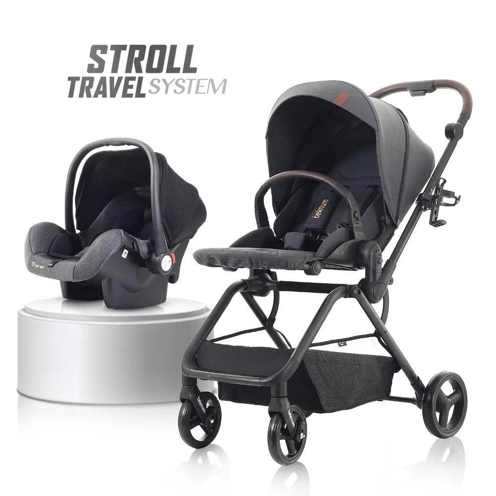 Teknum STROLL-1 Travel System with Reversible Stroller and Baby Car Seat - Grey