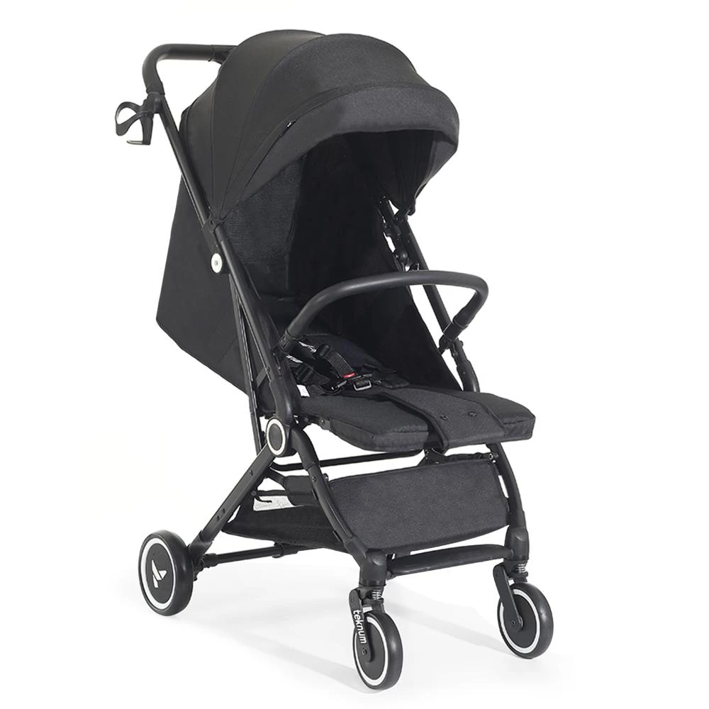 Travel light and smart with the Teknum Travel Cabin Stroller with Coffee Cup Holder - Black by SAMBOX, designed for ultimate convenience on holidays, city trips, or everyday outings. With its ultra-compact push-button fold, this stroller fits easily in airplane cabins or car boots, while the unique push trolley handle lets you wheel it like a suitcase when folded. Its breathable, reclinable seat with wide extendable canopy and big back window keeps your little one cool and comfortable, while premium 5.5" front and 6" rear wheels provide smooth maneuverability on all surfaces. Weighing just 6.7 kg with a sturdy metal frame and EN1888 certification, this cabin-approved stroller is perfect for parents on the go and keeps your coffee handy with a practical cup holder - exploring has never been easier!