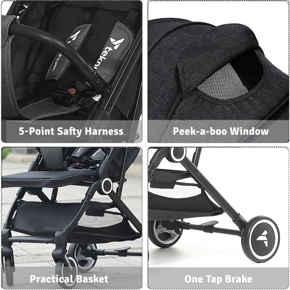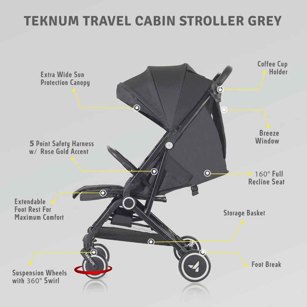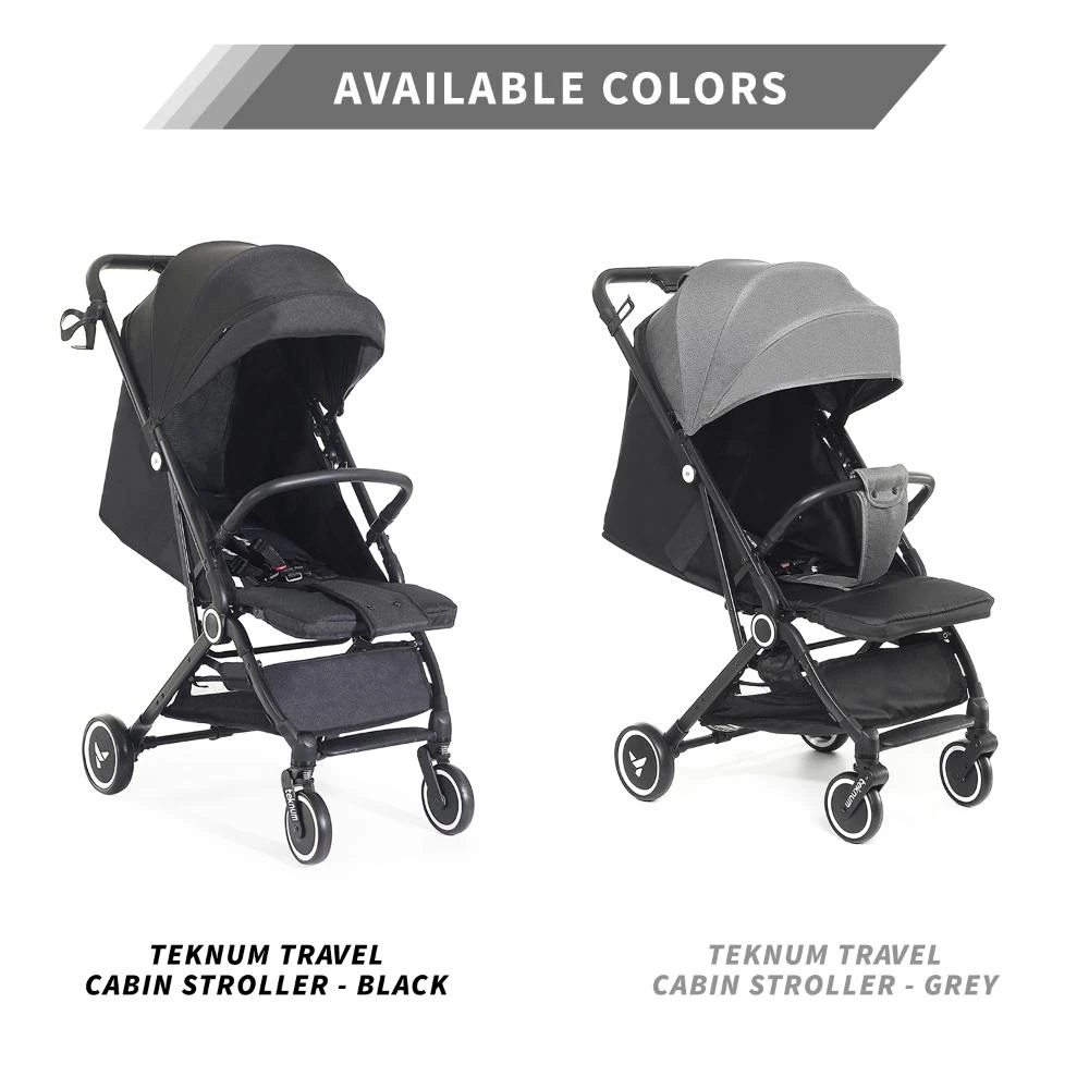 cabin travel stroller, lightweight stroller airplane approved, compact fold stroller, Teknum travel cabin stroller black, stroller with coffee cup holder, travel stroller with push trolley handle, baby stroller for vacation, cabin stroller with large canopy, easy fold travel stroller, best stroller for travel cabin