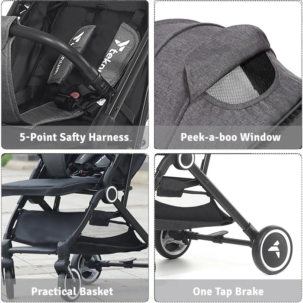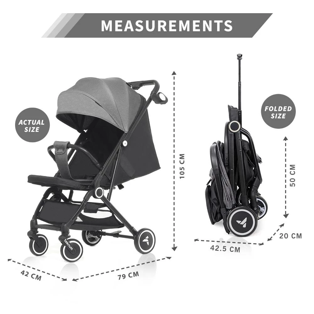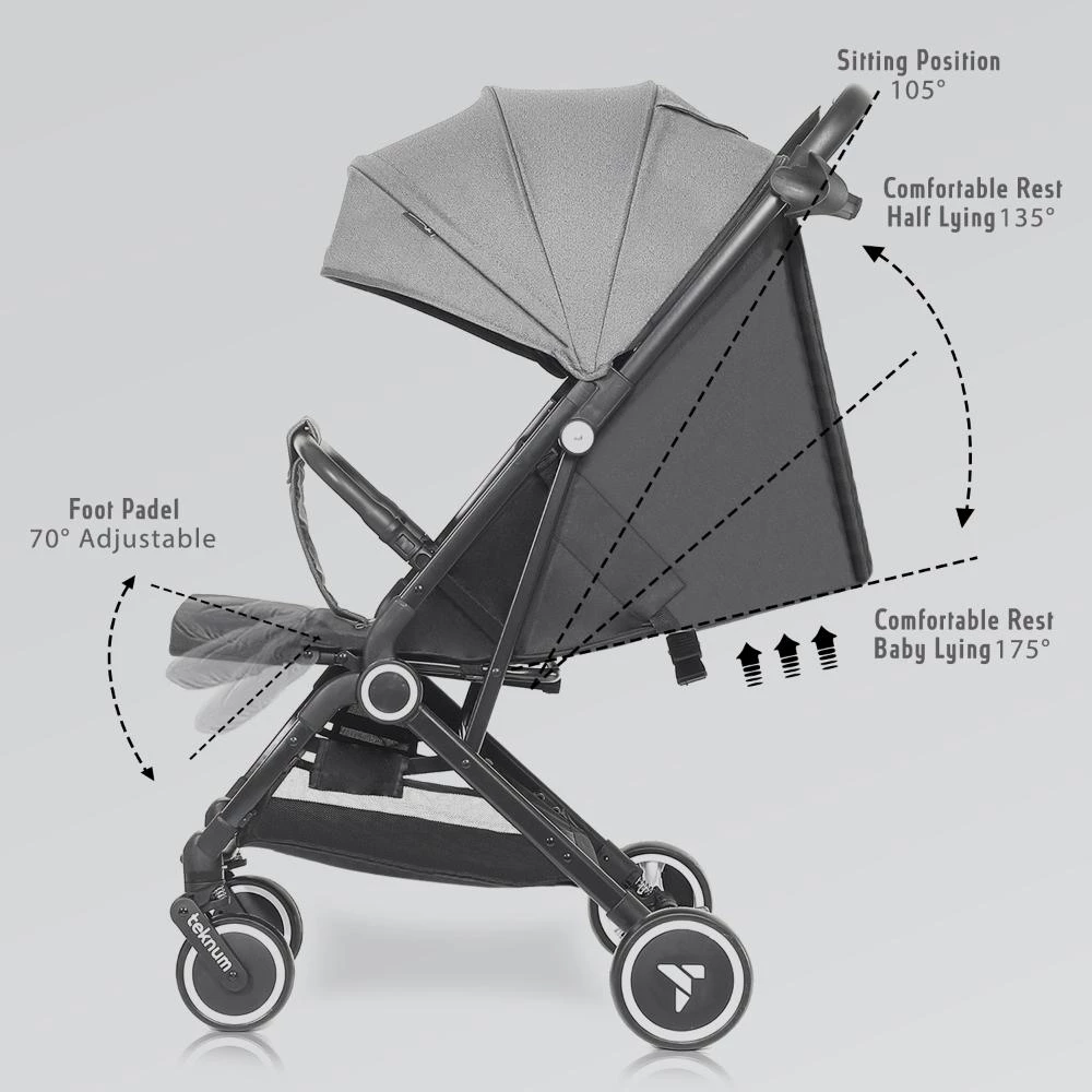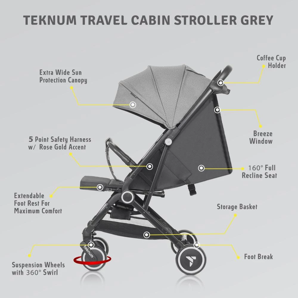 travel cabin stroller grey, airplane approved stroller, lightweight stroller with cup holder, Teknum travel stroller grey, compact push trolley stroller, stroller for airplane cabin, foldable travel stroller for babies, cabin stroller with big canopy, single hand fold stroller, best compact stroller for holidays