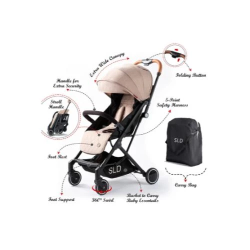 The Teknum Travel Lite Stroller in Khaki is the perfect blend of convenience, comfort, and style for parents on the move. Weighing only 5.7 kg, this stroller folds and unfolds in just one second with a single hand, making it incredibly easy to handle. Its compact folded size of 60x41x30 cm fits most aircraft cabin luggage standards, ideal for travel. The unique trolley-style push handle allows effortless rolling without straining your shoulders. Designed to handle all terrains including rough roads, grass, slopes, and deserts, the stroller features shock-absorbing 360° swivel lockable wheels for a smooth ride. With a sturdy aviation-grade aluminum alloy frame, a wide seat base, and a multi-position recline backrest from 95° to 180°, it offers maximum comfort for babies aged 0 to 4 years. The adjustable canopy protects your child from harsh weather, with a transparent skylight window to keep an eye on them. Safety is assured with a 5-point harness and foot-operated brakes. This package includes a mosquito net, seat cover, and a stroller carry bag, making the Teknum Travel Lite Stroller your ideal travel companion.