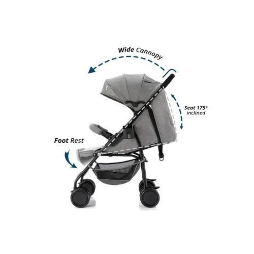 Teknum Trip Plus Stroller Grey with Extra Wide Canopy and Shock Absorbing Wheels