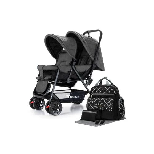 Teknum Twin Baby Stroller Combo -Dark Grey with Convertible Diaper Bag, Changing Mat & Accessories