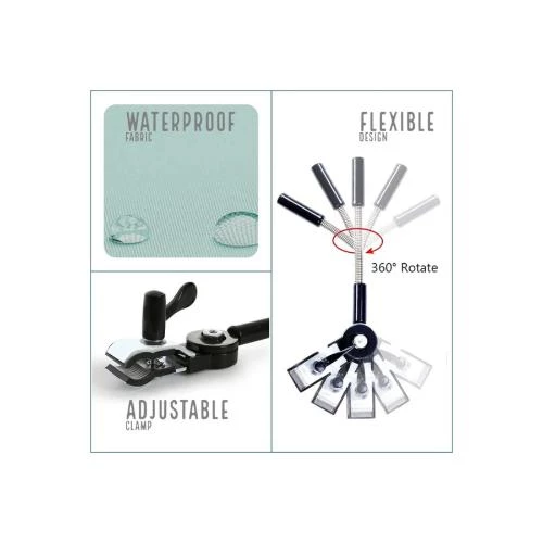 The Teknum Universal Stroller Umbrella with Holder Clip Clamp by SAMBOX offers 360° flexible protection from sunlight with its fully adjustable umbrella head and handle feet, ensuring comprehensive shade for your child. Made from high-quality alloy and tear-resistant waterproof fabric with 50+ UV protective coating, this durable umbrella provides long-lasting use with a strong yet compact alloy frame. Its universal clamp stand features a high-quality screw knob with a rubber-coated fixture to prevent scratches and fits most stroller frames, golf carts, wheelchairs, walkers, scooters, tricycles, bicycles, dog strollers, balcony chairs, deck chairs, and more. Lightweight and easy to fold, its convenient to carry and perfect for outdoor protection for babies and toddlers of all ages (0+ months).