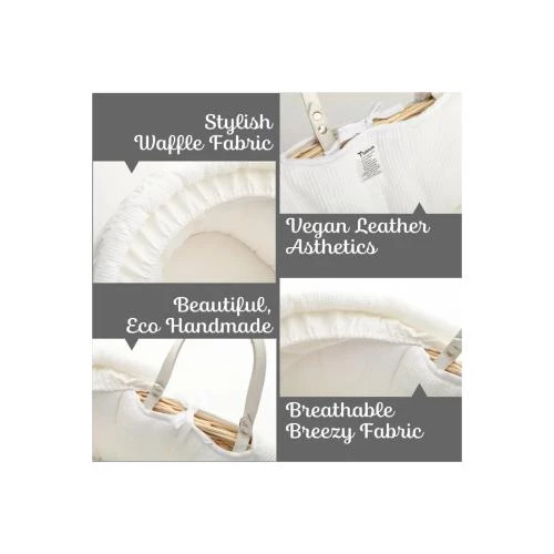 Teknum Infant Wicker Moses Basket with White Waffle Beddings & Rocker Stand -Wooden Brown