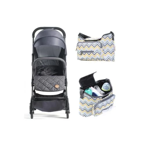 Travel Lite Stroller - Dark Grey by Teknum + Sunveno Baby Stroller Organizer Bag - Yellow Wave