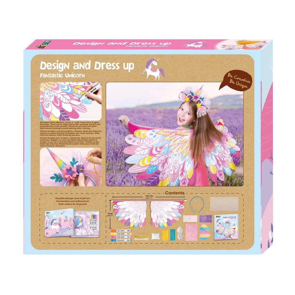 Avenir Design and Dress Up - Fantastic Unicorn | DIY Costume Set with Wings, Headband & Markers for Kids 5+