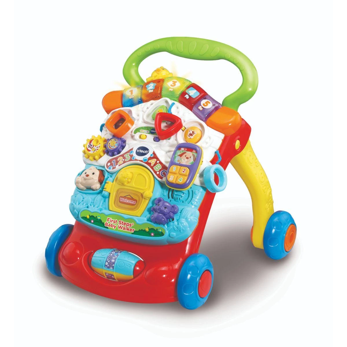 VTech FIRST STEPS^R BABY WALKER ( GREEN & RED) | 2-in-1 Baby Walker & Activity Centre - Interactive Learning & First Steps Support
