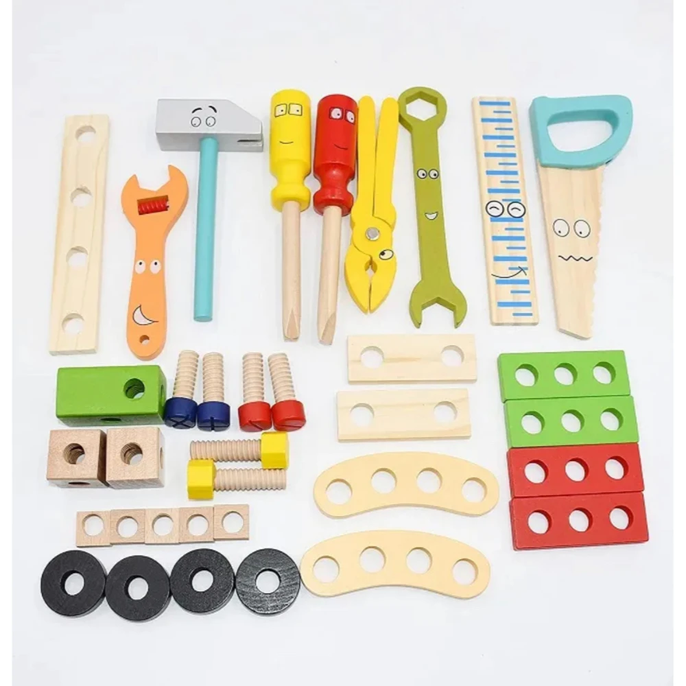 Our wooden tools kit inspires kids' immagination. It includes saws, rulers, screwdrivers, hammer, wrench, nails, screws, plier and various wooden parts. It helps develop hand-eye coordination and building skills of kids. Also encourages storytelling and role-play. This helps teach children about tools and their functions. The package comes in a durable and portable wooden box with handles, which can be carried anywhere you want and helps in easy clean-up. The tools kit can enhance children's cognitive ability, hands-on ability and brain development