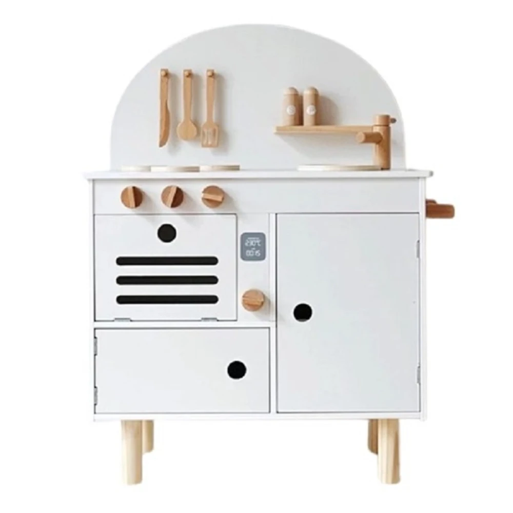 Introduce your kids to the most important room in the house with our vintage design play kitchen. Its knobs gives a realistic touch with the clicking sounds they make whenever the little hands turn them around. It also features a sink with a faucet, a shelf to keep the salt & pepper on and 3 hooks for the spatulas. In addition to that, it has plenty of space underneath to use it as storage.Comes with a set of accessories as well.