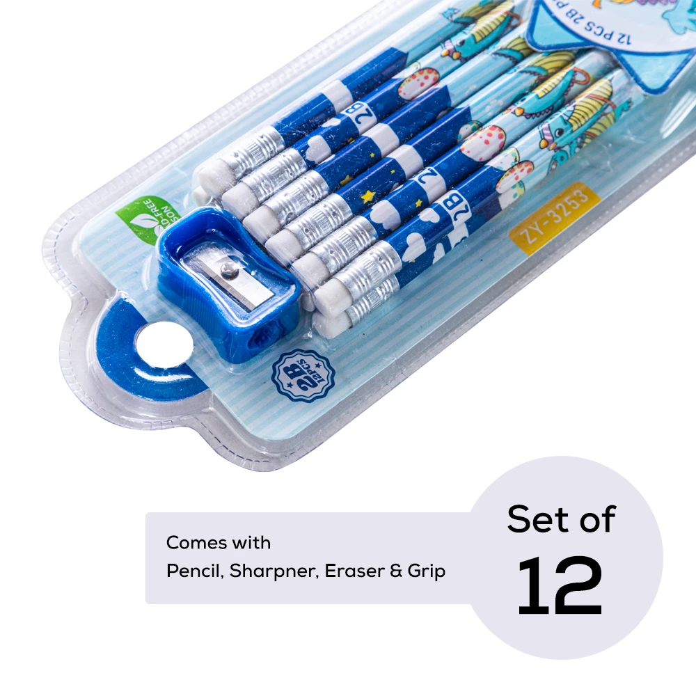 Eazy Kids 12-Pack 2B Pencils with Eraser & Sharpener - Blue