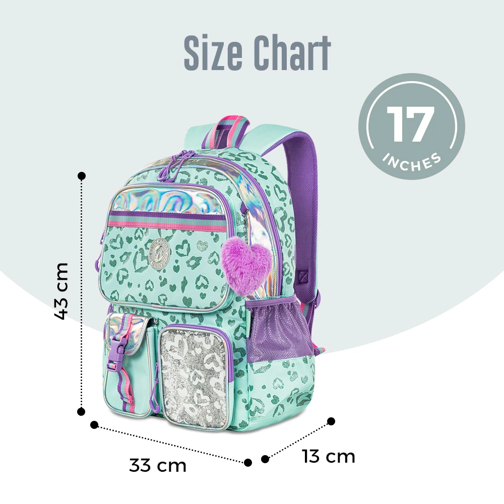 The Eazy Kids 17" Love Green School Backpack Set combines style, comfort, and practicality in one. Featuring a trendy green tone with “Love” theme accents, this 4-piece set includes a trolley backpack, insulated lunch bag, and pencil pouch. The 4-wheel trolley ensures smooth, easy rolling even when the bag is full, reducing strain on young shoulders and backs.