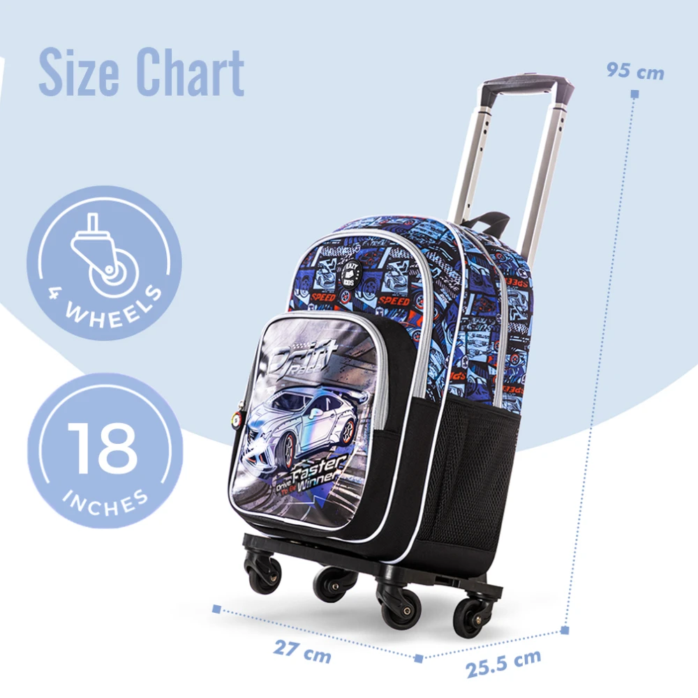 eazy kids school bag,car racing backpack,kids trolley school bag,boys school bag set,wheeled school backpack,4-wheel trolley school bag,kids lunch bag set,kids pencil case,18 inch school bag,kids travel backpack,durable kids school bag,racing theme school bag,boys school set,water resistant school bag,kids school gear,back to school bag set,kids ergonomic backpack,kids school bag combo,school trolley with lunch bag,stylish school backpack