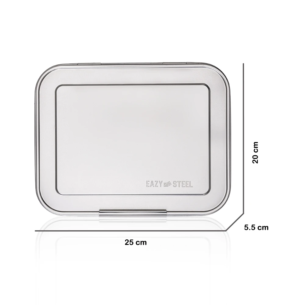 This purple stainless steel bento lunch box by Eazy Kids brings practicality and flair to packed meals. Designed with durable, food-grade steel and BPA-free materials, it offers three separate compartments to keep foods distinct and appealing. A silicone-lined lid ensures leakproof containment—even with moist sauces or dips. The slanted lid design provides smooth opening, while the removable tray supports easy cleaning. Dishwasher-safe on the top rack and compatible with microwave use (inner tray only), this lunch box blends convenience, hygiene, and a splash of color into one smart solution.