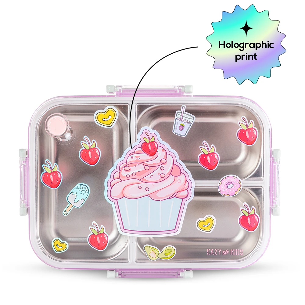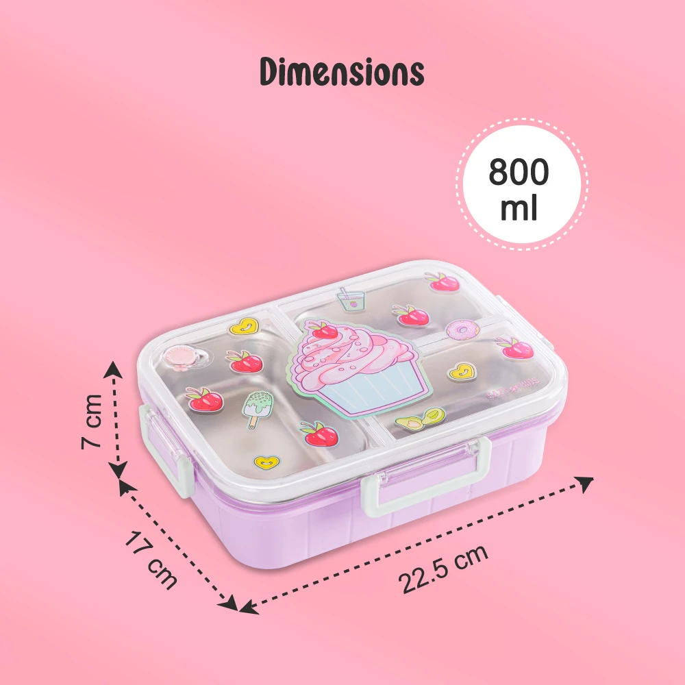 eazy kids bento lunch box,stainless steel kids lunch box,3-compartment lunch box,cupcake purple lunch box,kids school lunch box,800ml bento lunch box,leak proof lunch box for kids,kids food storage box,compact stainless steel lunch box,kids picnic lunch box,purple themed lunch box,portion control lunch box,bento lunch box for school,kids lunch container with lid,stylish lunch box for girls