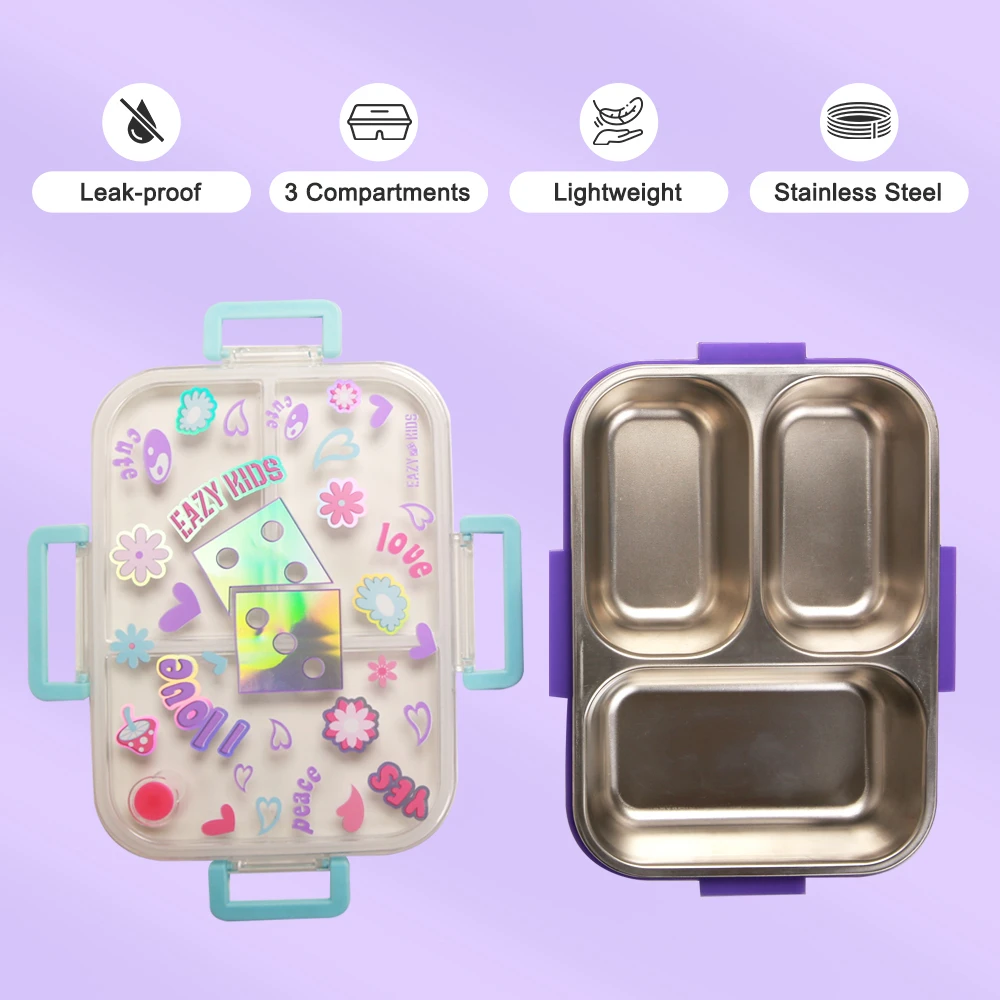 eazy kids lunch box, floral lunch box, purple lunch box, stainless steel lunch box, bento lunch box, insulated lunch bag set, lunch box for school, kids lunch box, reusable lunch box, eco friendly lunch box, stylish lunch box, portable lunch set, durable lunch box, lunch storage set, travel lunch box, thermal lunch box, leak proof lunch box, food container set, lunch bag combo, compartment lunch box