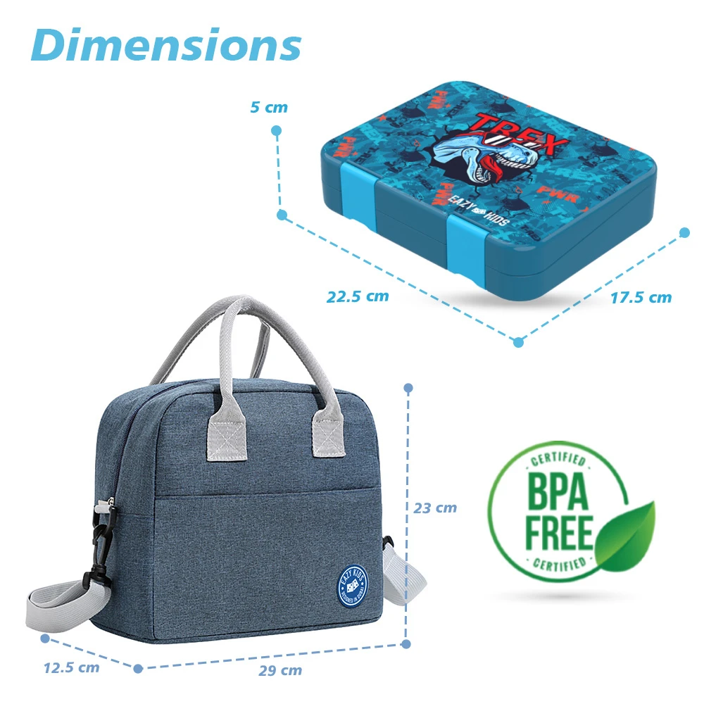 Eazy Kids 6 & 4 Convertible Bento Lunch Box with Lunch Bag and Sandwich Cutter Set - TREX Blue