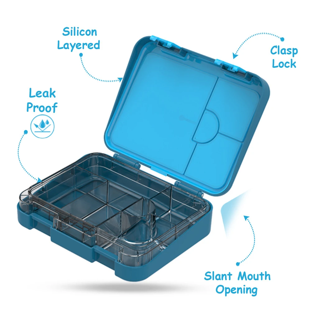 Eazy Kids 6 & 4 Convertible Bento Lunch Box with Stainless Steel 640ml Water Bottle and Sandwich Cutter Set - TREX Blue