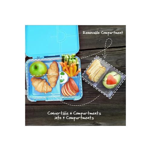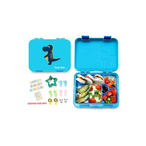 Eazy Kids 6 & 4 Compartment Convertible Bento Lunch Box - Dino Blue with Cutters & Picks