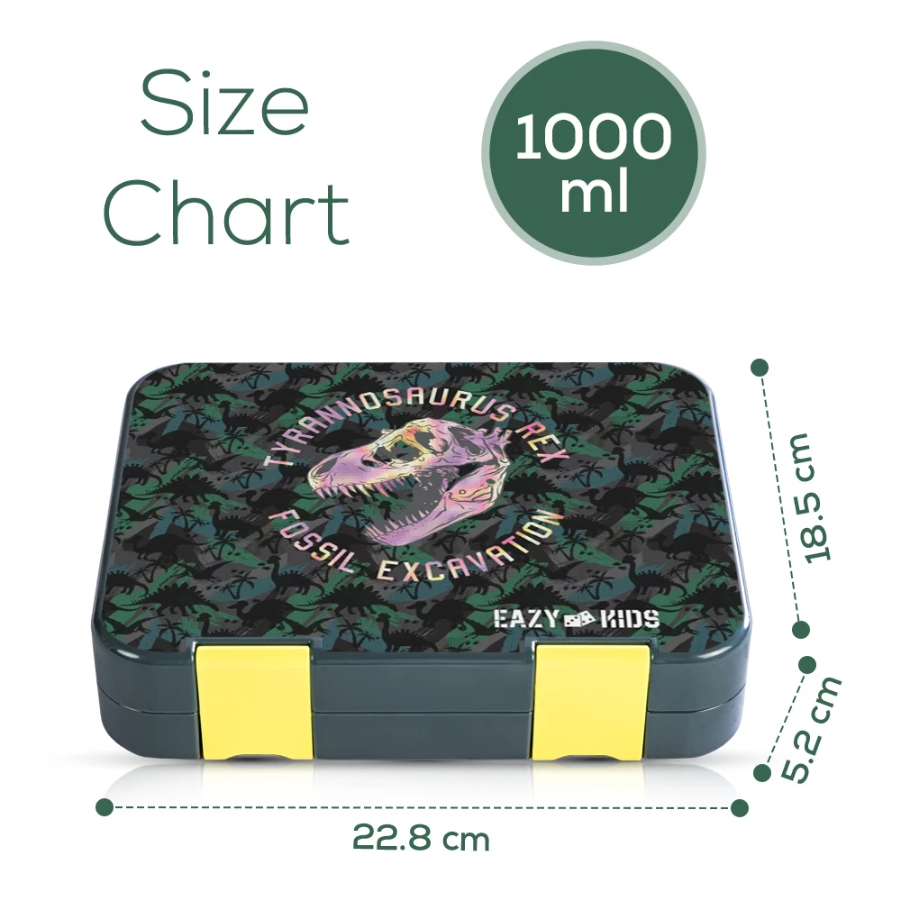 eazy kids lunch box,convertible bento lunch box,t rex dino lunch box,dinosaur lunch box,kids lunch set with cutlery,alphabet sticker lunch box,kids school lunch kit,leakproof kids lunch box,eco friendly lunch container,6 compartment lunch box,4 compartment lunch box,reusable lunch set,children lunch essentials,kids picnic lunch set,travel lunch box for kids,food safe lunch container
